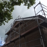 Voor opdrachtgever "Plegt Vos" bouwden wij een steiger om het hele blok om de dakrenovatie te kunnen verzorgen voor 4 woningen in Coevorden. -